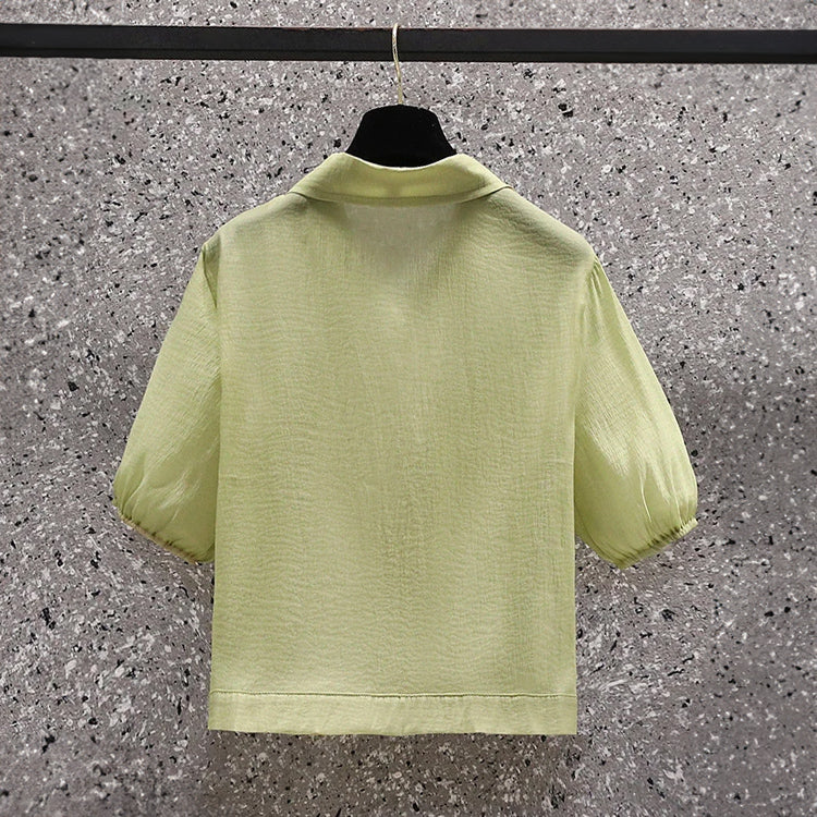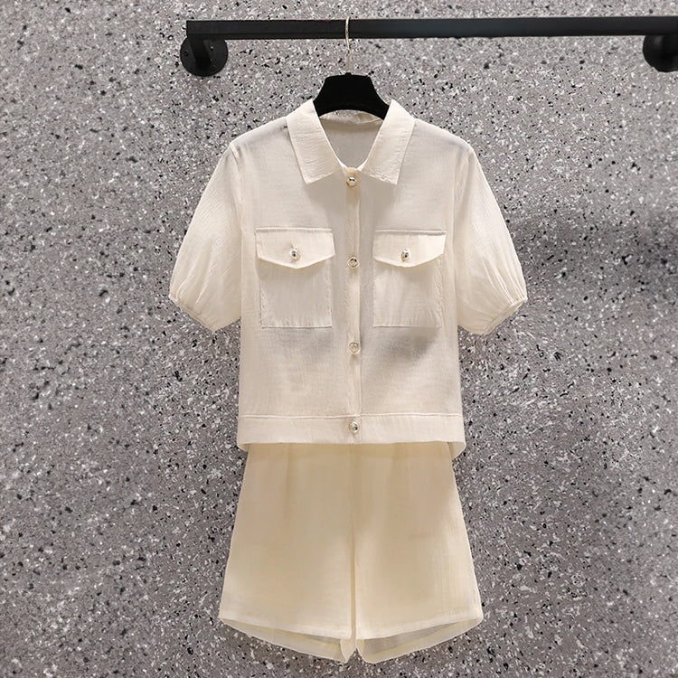 Introducing the Elise Leroy Ava 2 Piece Set, where sophistication meets comfort. This set features a shirt adorned with short puff sleeves and chest pockets, paired with relaxed-fit shorts for effortless style.