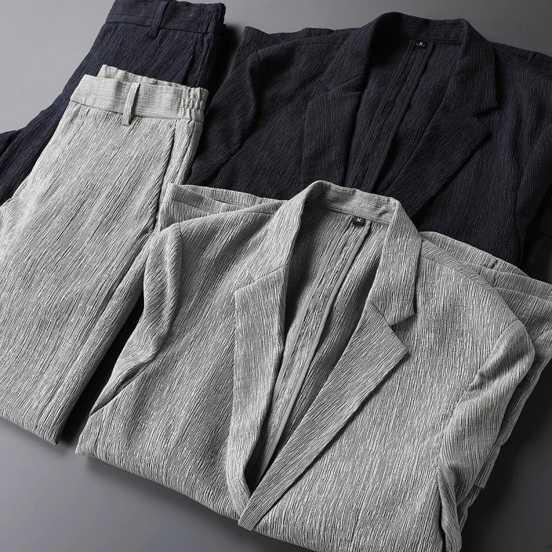 The Roberto Russo Summer Suit Set pairs a sleek blazer with matching trousers, both cut from a lightweight, iron-free fabric. Whether you're attending a summer wedding or simply dressing to impress, this set delivers effortless polish with a high-end finish.